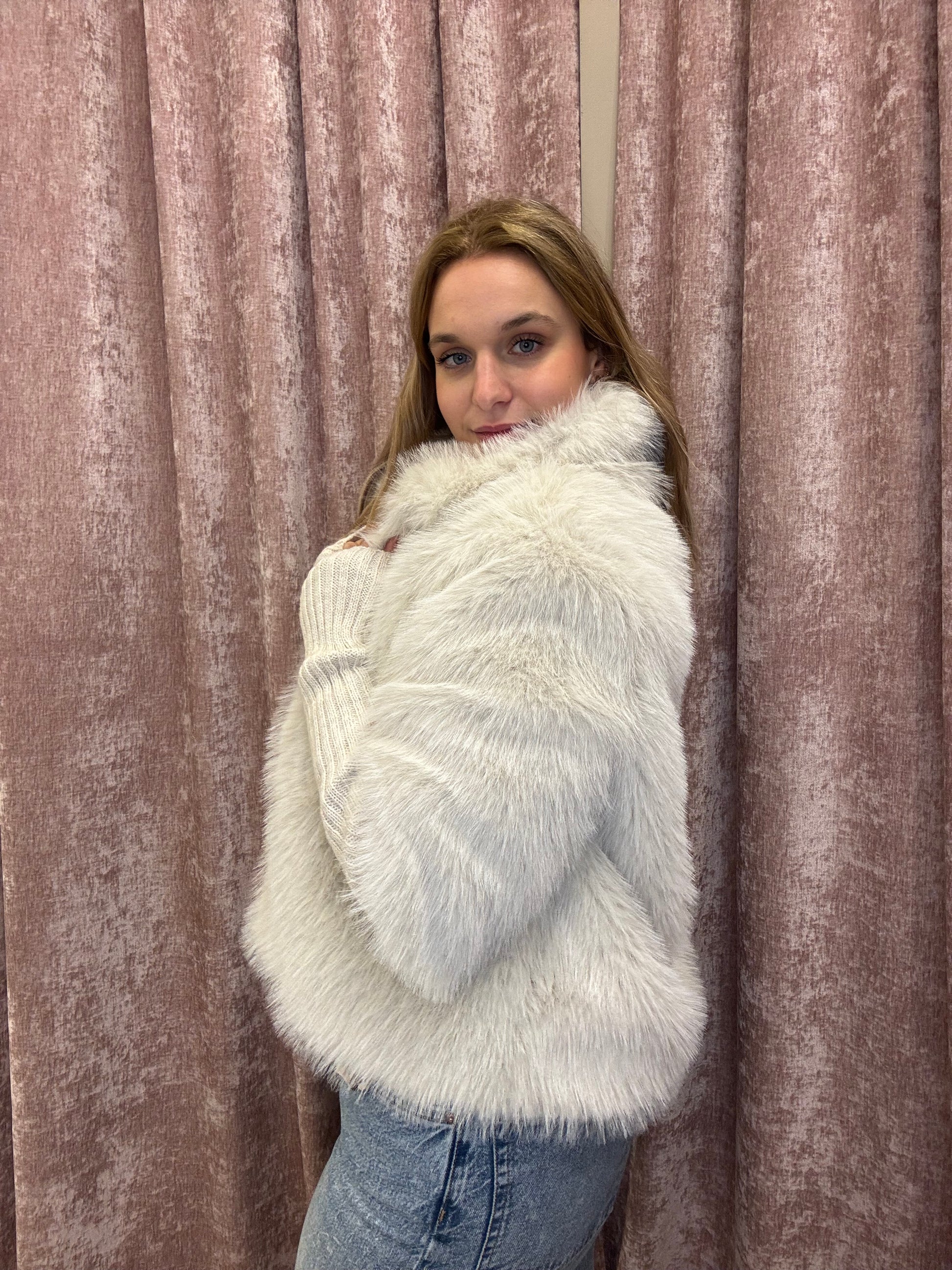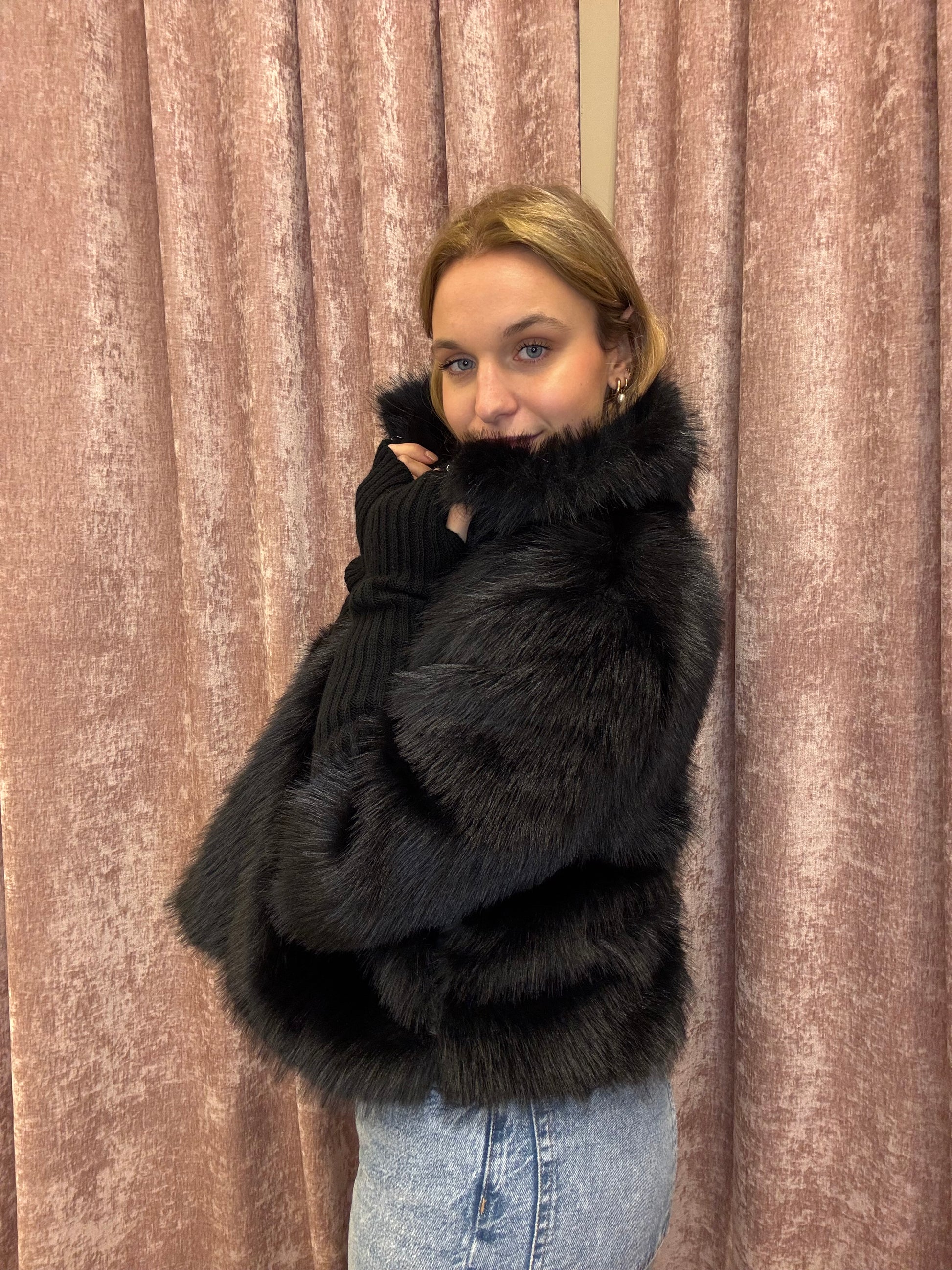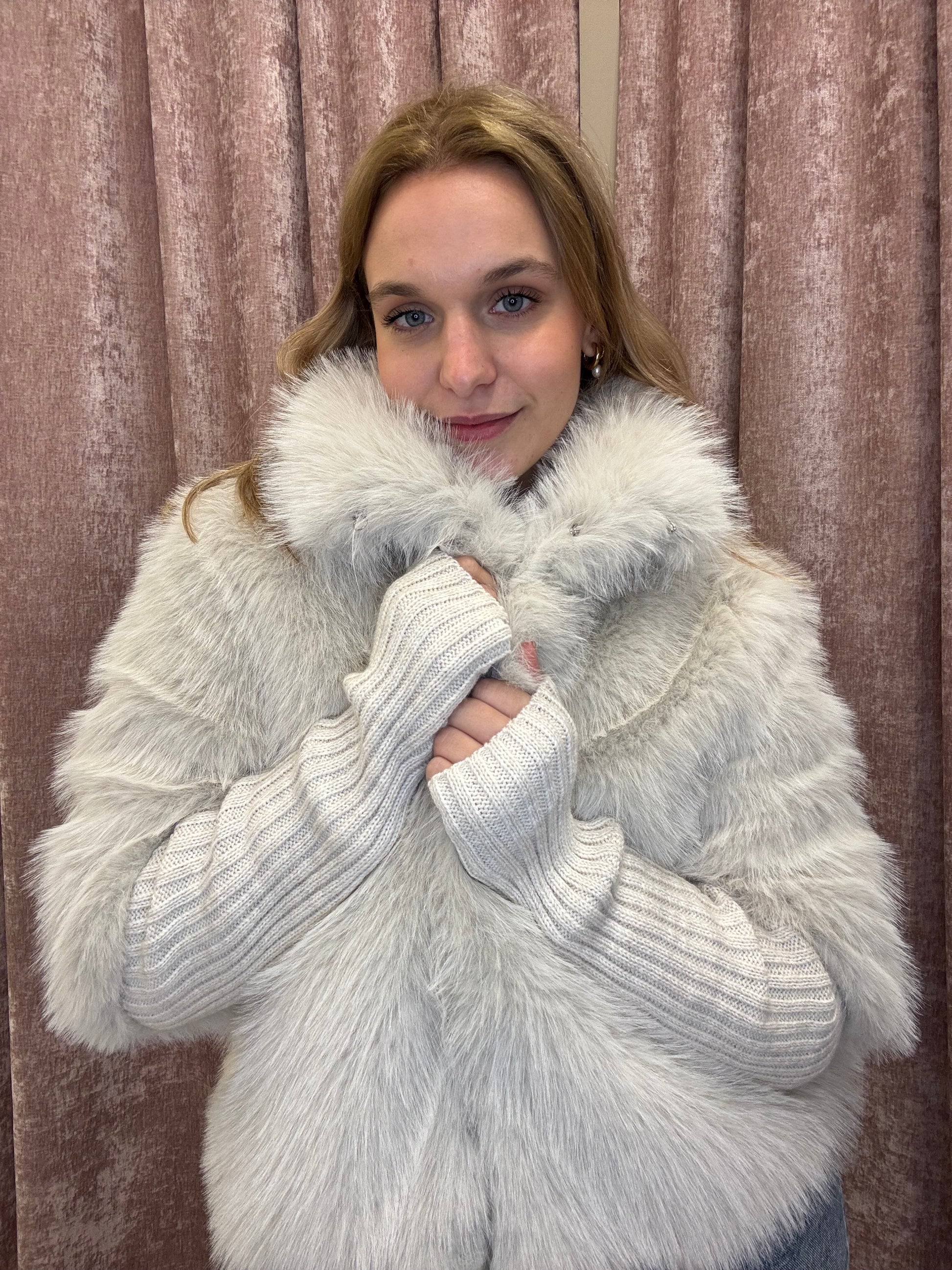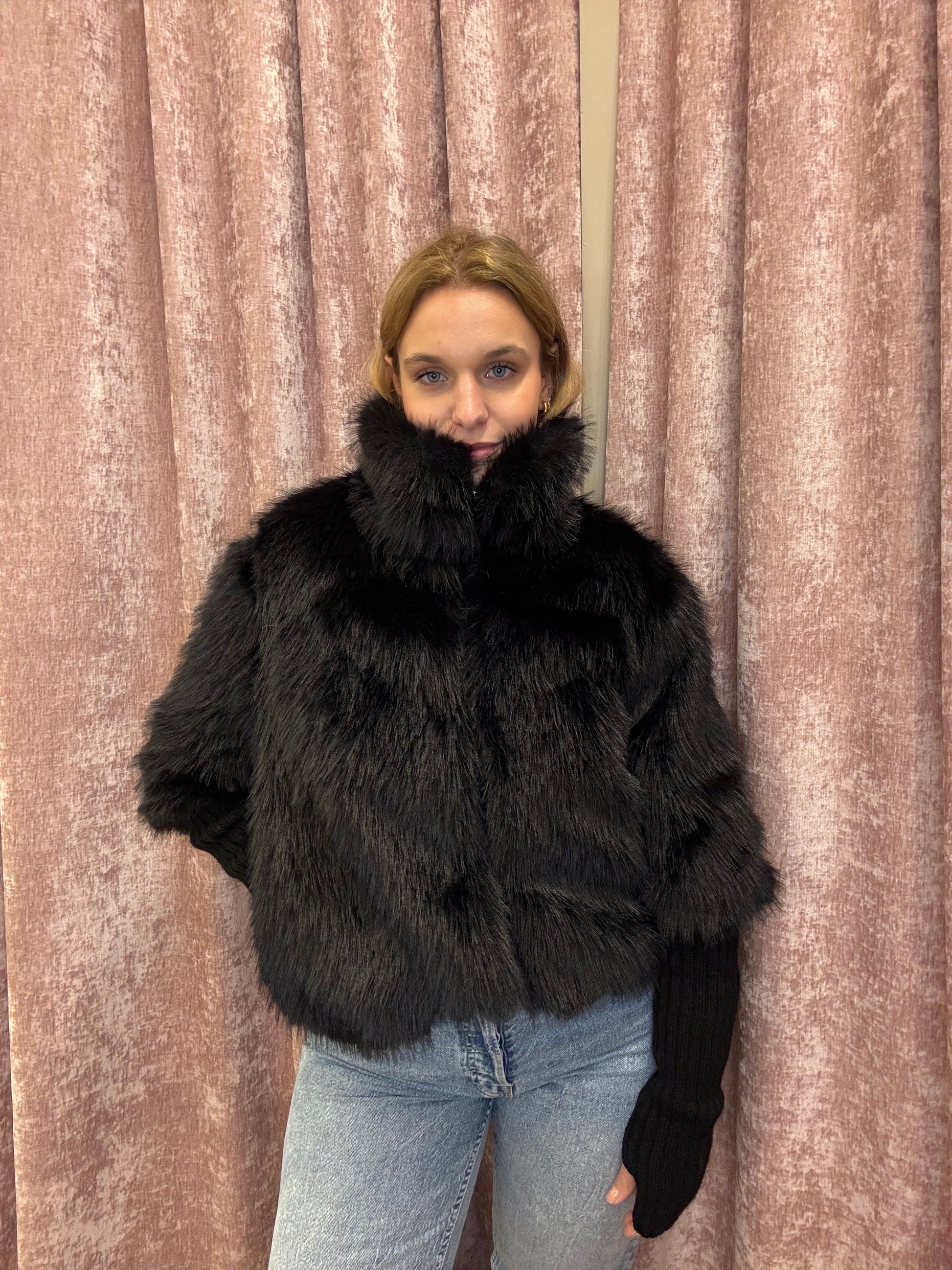Morbida e avvolgente, questa eco pelliccia unisce eleganza e praticità in un unico capo. Il design presenta una manica a tre quarti completata da un manicotto in lana con fessura per il pollice, ideale per proteggere le mani nelle giornate più fredde. Il collo alto e la chiusura fino in cima assicurano massimo comfort e calore, rendendola perfetta per un look sofisticato e contemporaneo.