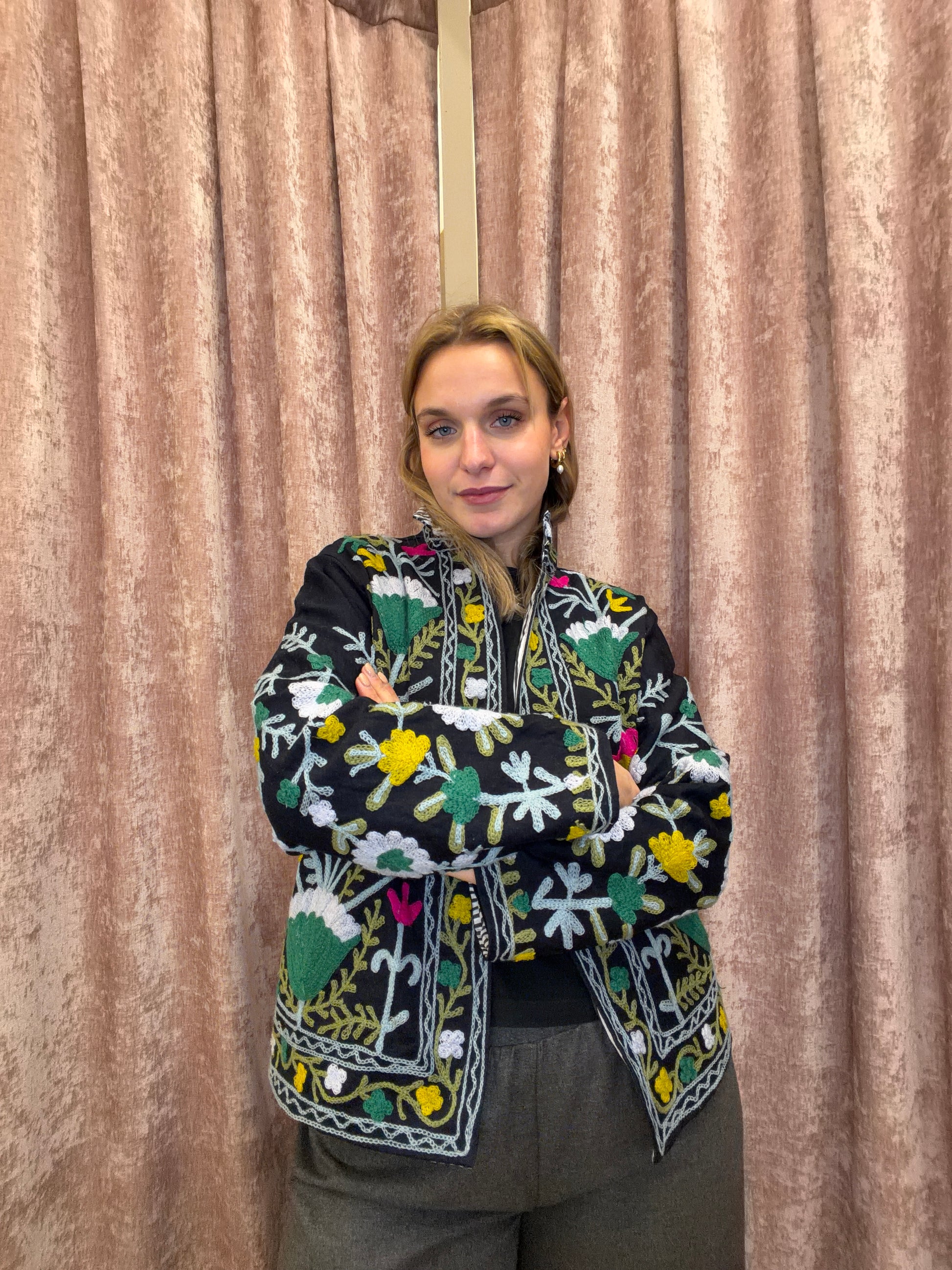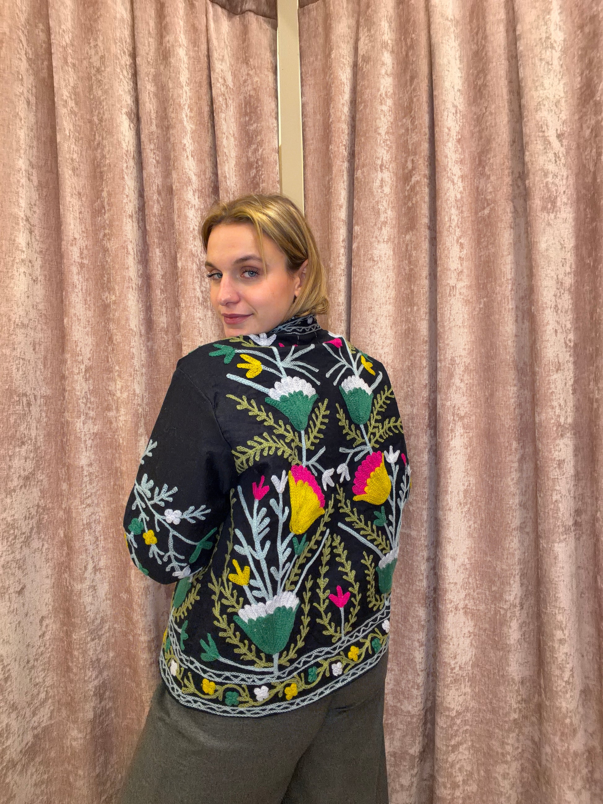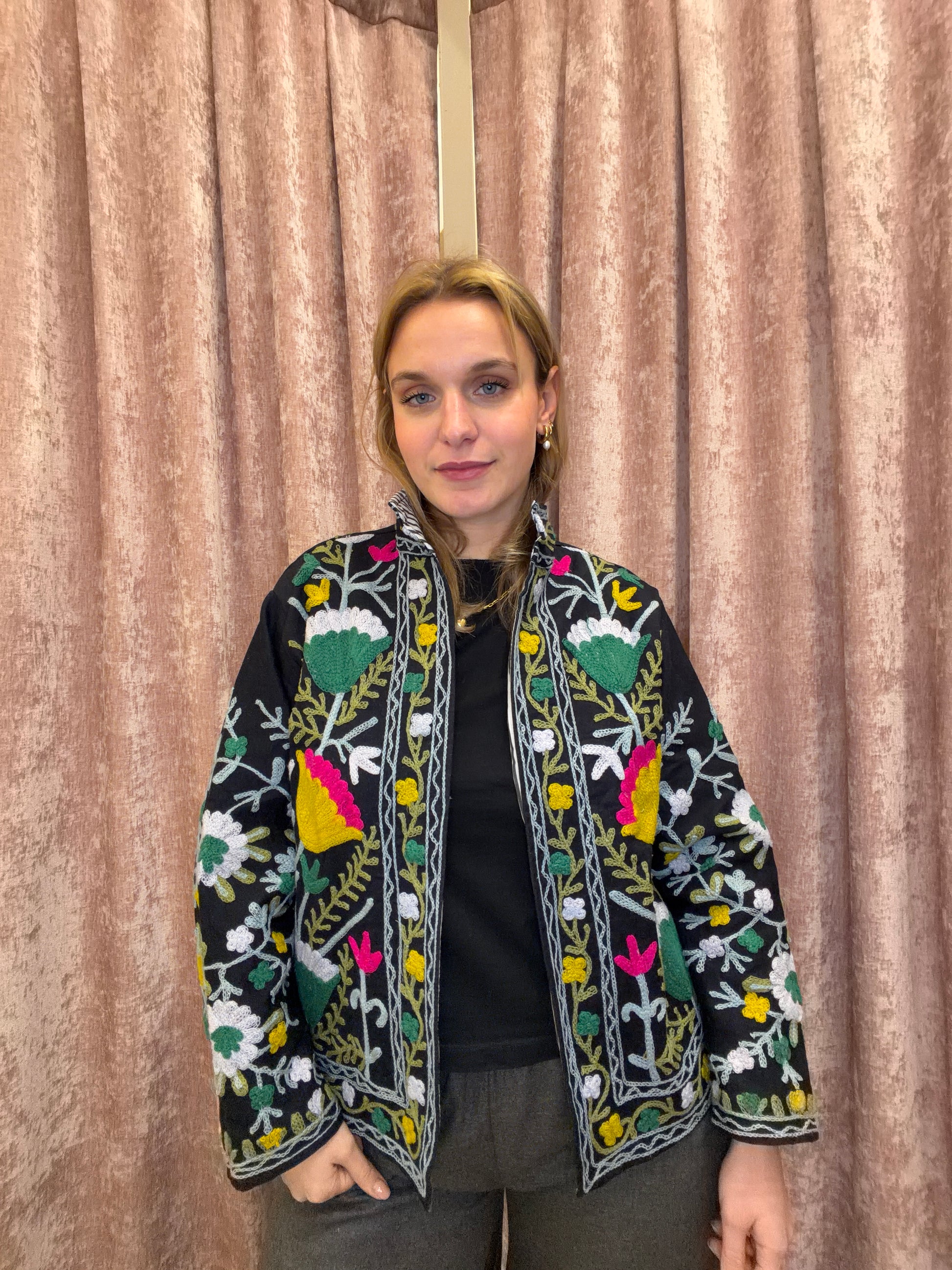 Un capo che conquista al primo sguardo grazie ai suoi ricami colorati e alle ispirazioni etniche. Ogni giacca è realizzata artigianalmente, con motivi floreali e geometrici che rendono ogni pezzo unico. Perfetta per aggiungere un tocco boho e raffinato ai tuoi look di tutti i giorni, si abbina facilmente a jeans, pantaloni o abiti. Disponibile in diverse varianti di colore e fantasia.