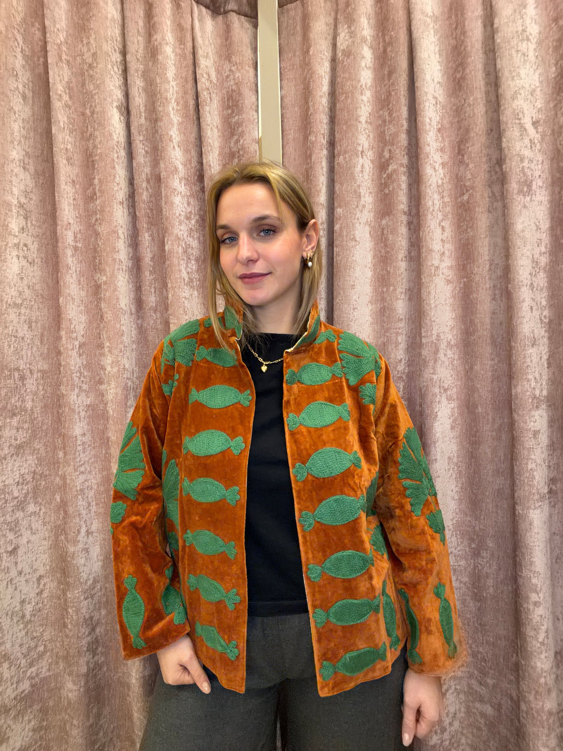 Un capo che conquista al primo sguardo grazie ai suoi ricami colorati e alle ispirazioni etniche. Ogni giacca è realizzata artigianalmente, con motivi floreali e geometrici che rendono ogni pezzo unico. Perfetta per aggiungere un tocco boho e raffinato ai tuoi look di tutti i giorni, si abbina facilmente a jeans, pantaloni o abiti. Disponibile in diverse varianti di colore e fantasia.